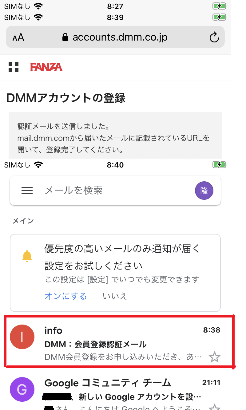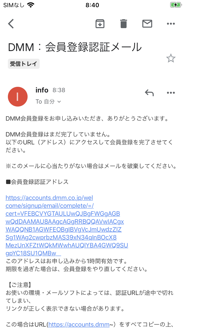 登録したメールアドレスに認証メールが届きます。認証メール内のリンクをクリックすることで、FANZAの会員登録手続きは終わりです。